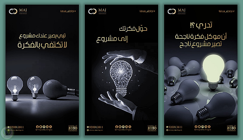 ️ استخدام رموز بصرية قوية مثل الساعة الرملية، الشطرنج، الأموال، والمصافحة لتعزيز رسائل التمويل والتخطيط.