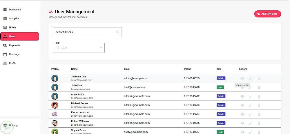 نظام دردشة مدمج: يتيح تواصلًا مباشرًا بين المستخدمين، المضيفين، وفريق الدعم لتحسين تجربة العملاء.