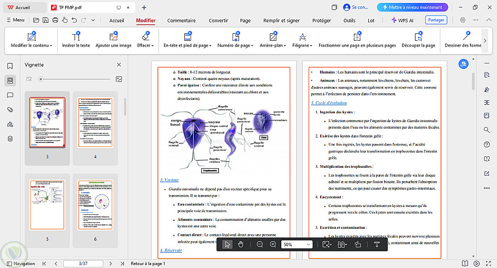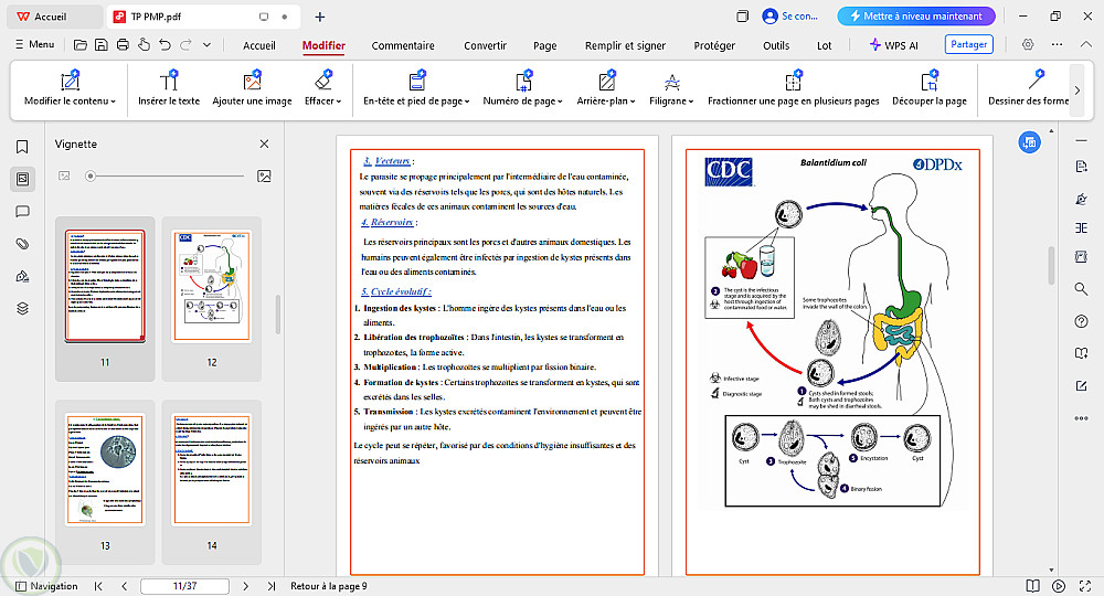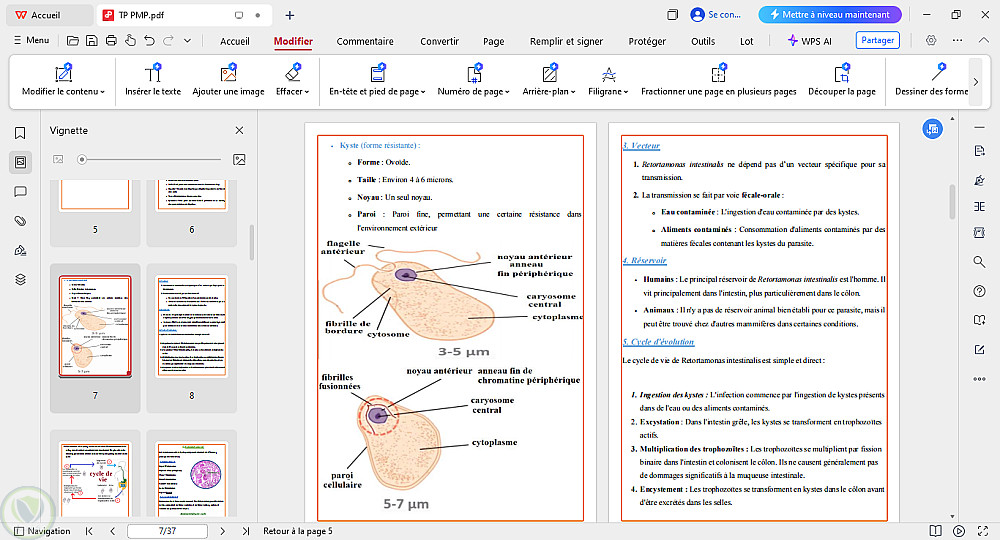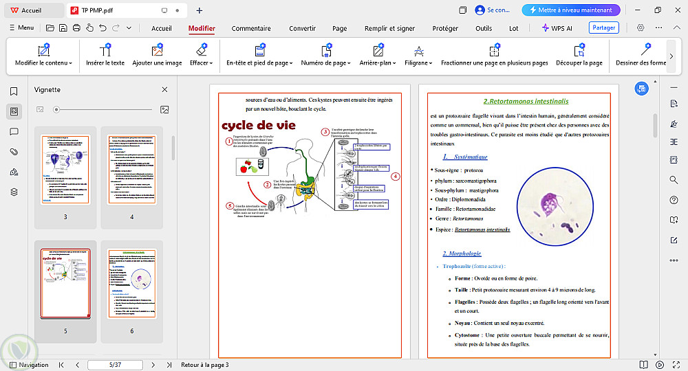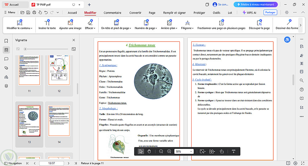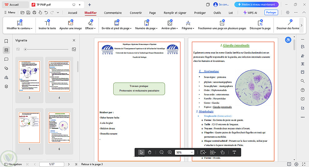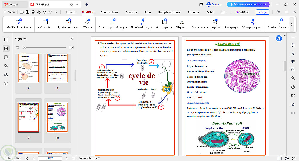 في هذا العمل، قمتُ بإعداد تقرير شامل ومنظم للأعمال التطبيقية الخاصة بـ Protozoaire et Métazoaire Parasitaire، حيث يتضمن: