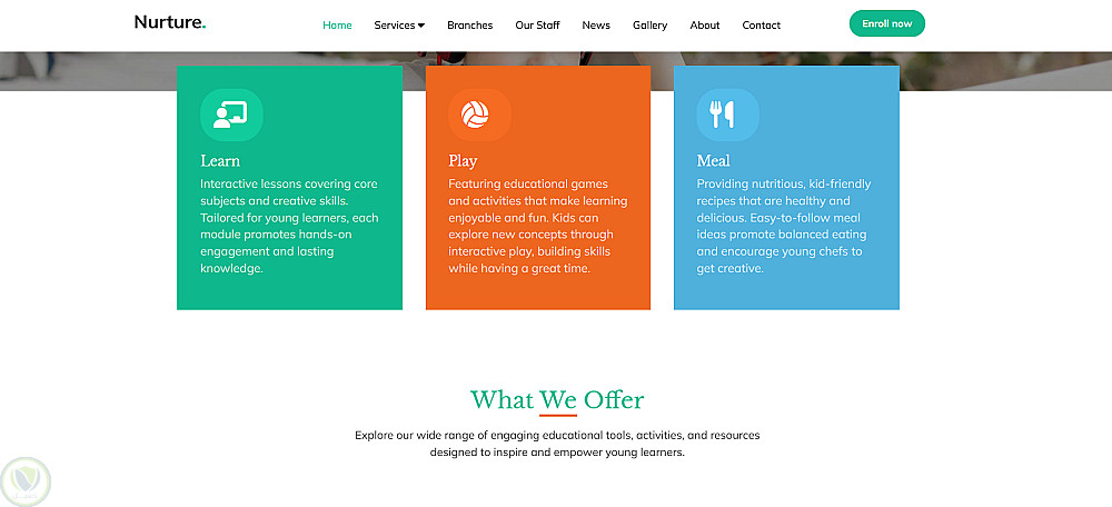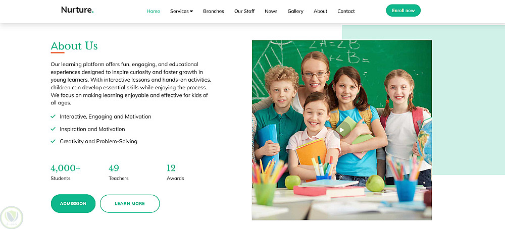 قالب Nurture هو قالب ويب حديث وتفاعلي مصمم خصيصًا للمنصات التعليمية الموجهة للأطفال، حيث يجمع بين التصميم الجذاب والتنظيم الواضح لإنشاء بيئة تعليمية رقمية تحفّز الفضول والإبداع. يتميز القالب بواجهة سهلة الاستخدام تتناسب مع احتياجات الصغار، إلى جانب عناصر تفاعلية ورسوم متحركة تضيف طابعًا ممتعًا إلى تجربة التعلم.