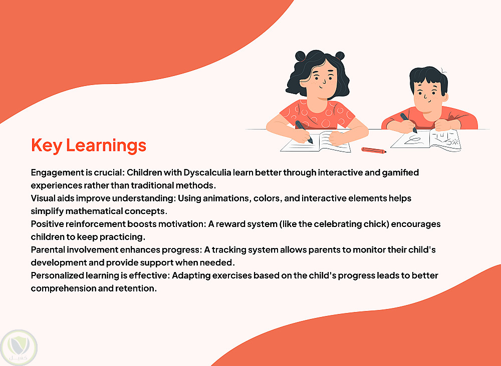 يعاني الأطفال المصابون بعسر الحساب من صعوبات في فهم الأرقام والرياضيات الأساسية، مما يجعل أساليب التعلم التقليدية غير فعّالة. وهذا يؤثر سلبًا على أدائهم الأكاديمي وثقتهم بأنفسهم.