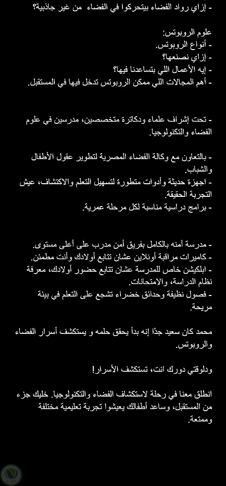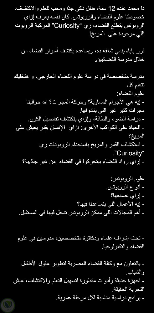 إسكريبت لفيديو موشن جرافيك عن مدرسة لعلوم الفضاء و الروبوتس