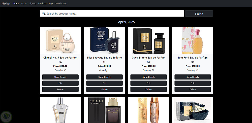 المشروع ده عباره عن eCommerce website لعرض الانواع المختلفه من البرفيومز يحتوي علي صفحات متتعدده مثل