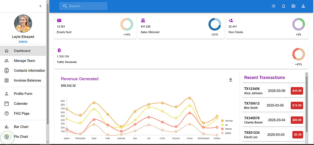 هل تبحث عن لوحة تحكم احترافية تتميز بالمرونة، السلاسة، وسهولة الاستخدام؟ لقد قمتُ بتطوير لوحة تحكم إدارية متكاملة باستخدام React.js Material UI، تتضمن الميزات التالية: