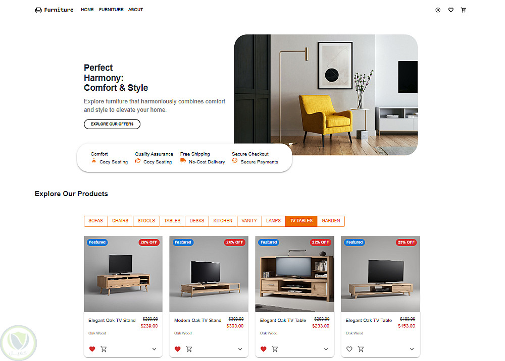 موقع بيع أثاث أونلاين متجاوب وسريع بـ React JS