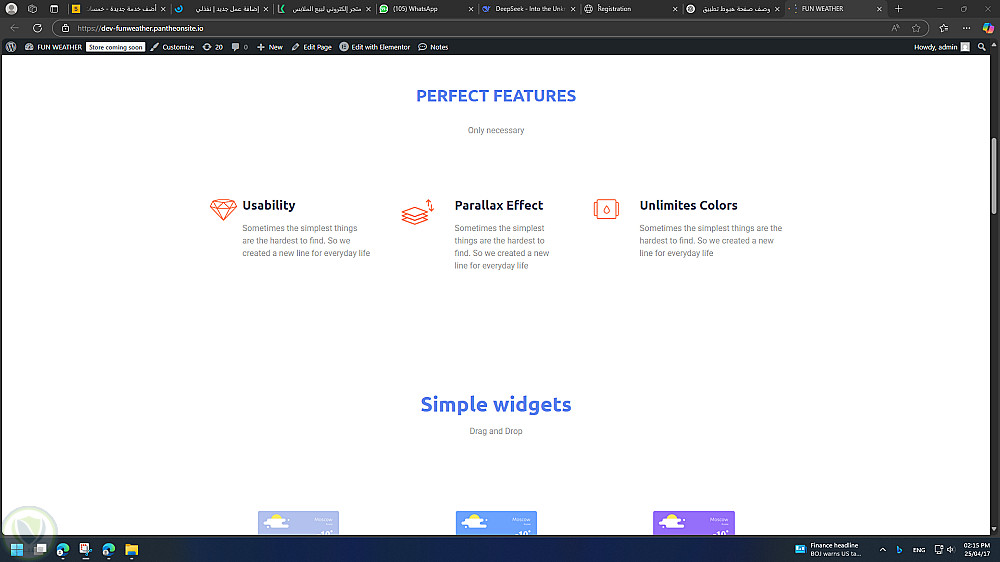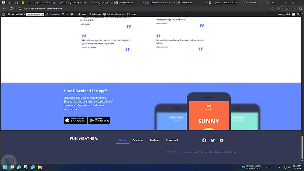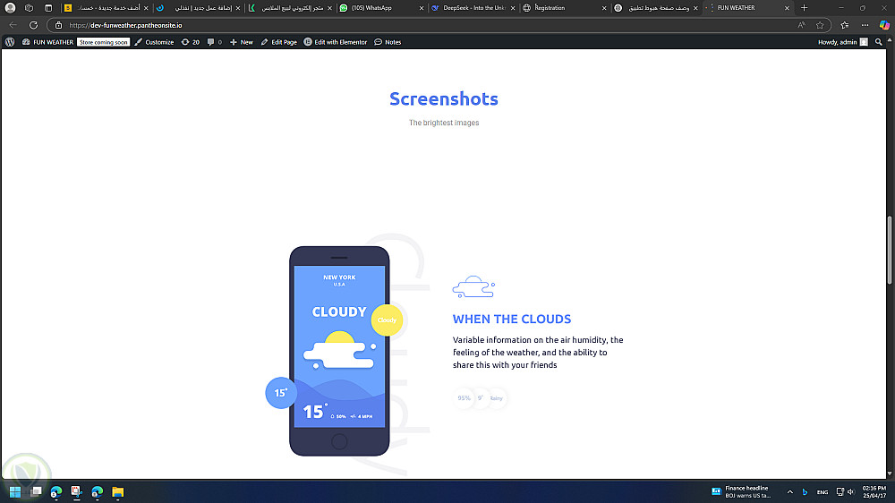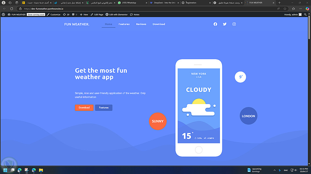 صفحة هبوط لتطبيق خاص بعرض معلومات عن الطقس