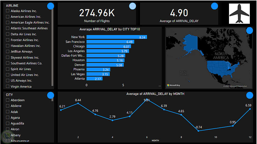 باور بي اي داشبورد لتحليل بيانات رحلات الطيران Power BI