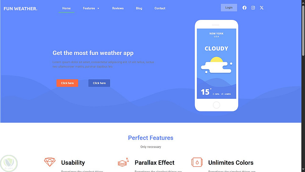 موقع FUN WEATHER هو صفحة هبوط ترويجية لتطبيق طقس عصري، يتميز بتصميم جذاب وسهل الاستخدام. يعرض حالة الطقس بطريقة ممتعة، مع ميزات مثل سهولة الاستخدام، تأثيرات بصرية جذابة، وألوان قابلة للتخصيص. يهدف الموقع إلى جذب المستخدمين لتحميل التطبيق من خلال واجهة بسيطة وأزرار دعوة واضحة.