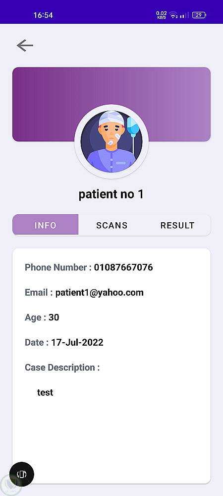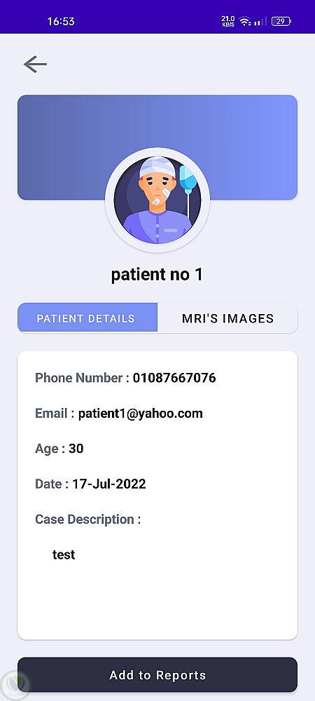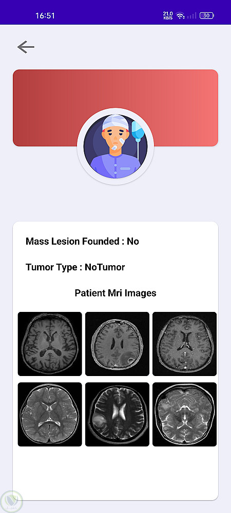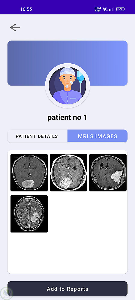 يتيح هذا التطبيق للمستخدمين رفع صور أشعة الرنين المغناطيسي للكشف عن أورام الدماغ باستخدام نماذج تعلم الآلة. يمكن للمستخدمين إدارة بيانات المرضى، والتواصل مع الأطباء عبر الدردشة، وحفظ التقارير للرجوع إليها لاحقًا