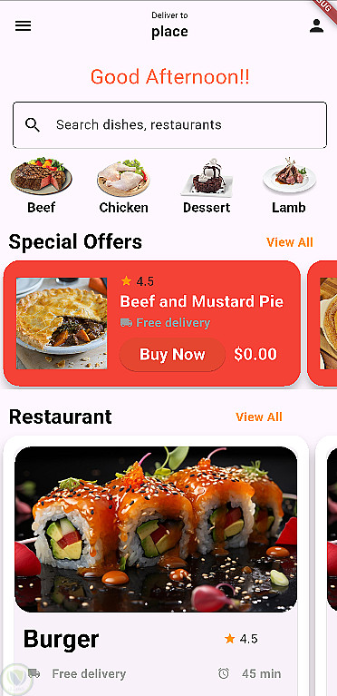 تطبيق موبايل لتوصيل الطعام تم بناؤه باستخدام فلاتر مستوحى من مجموعة واجهات Comida UI Kit على Figma Community. يوفر التطبيق واجهة حديثة وسهلة الاستخدام لتصفح المطاعم، طلب الوجبات، وتتبع عمليات التوصيل.