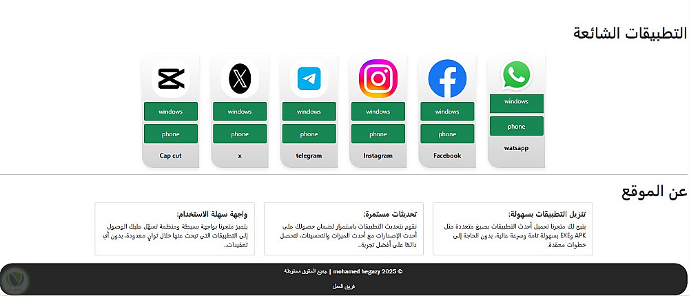 عمل من الاعمال التي سبق و برمجتها وهو مشروع متجر تطبيقات موقع ويب لتحميل التطبيقات ب صيغ مختلفة ك (ios - android )