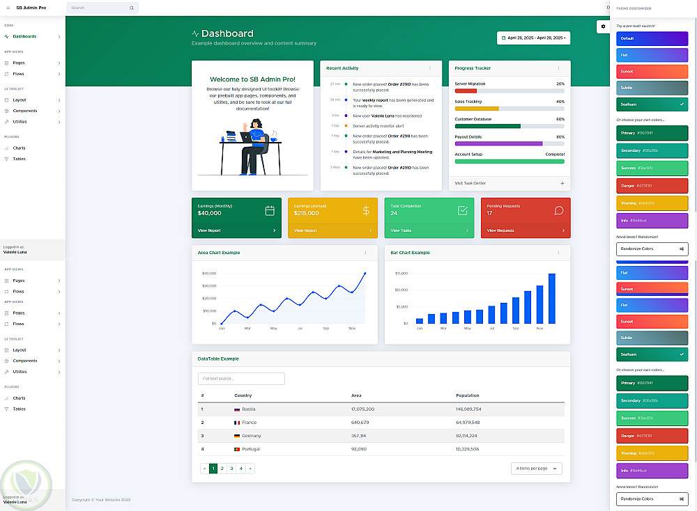 قمت بتصميم وتطوير لوحة تحكم احترافية باستخدام Bootstrap بتصميم حديث ومتجاوب، مع تنظيم واضح لواجهة المستخدم.
