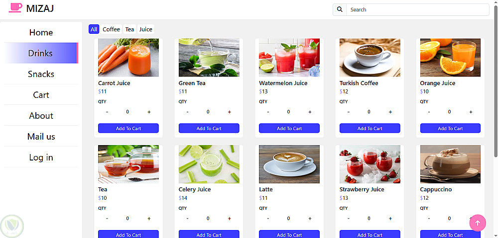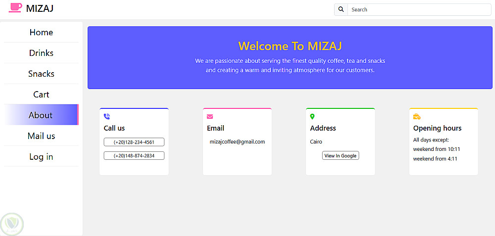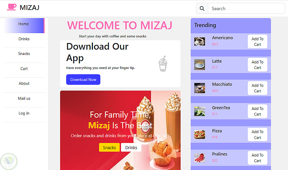 تطبيق ويب متجاوب يوفر منصة تجارة إلكترونية تواجه المستخدم لشراء الطعام من المطعم.