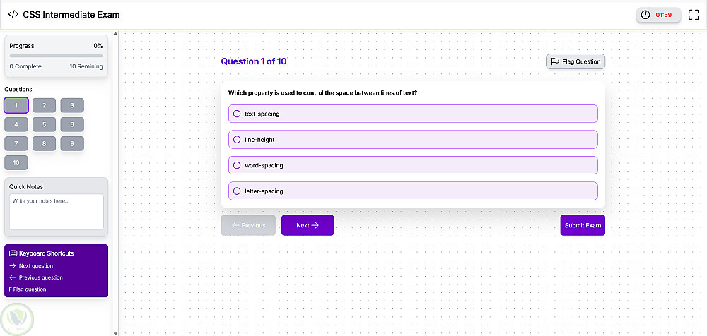 واجهة أداء الامتحان تشمل: