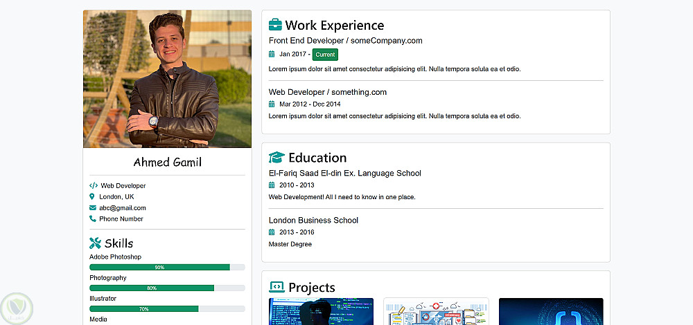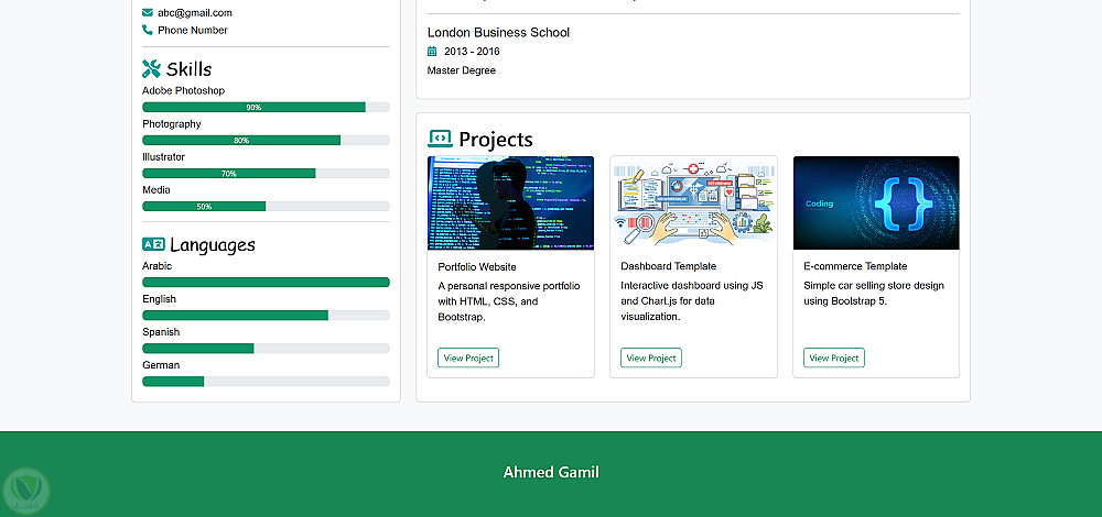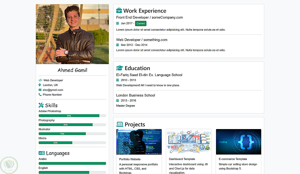 تصميم وتطوير موقع سيرة ذاتية (CV Portfolio) باستخدام Bootstrap