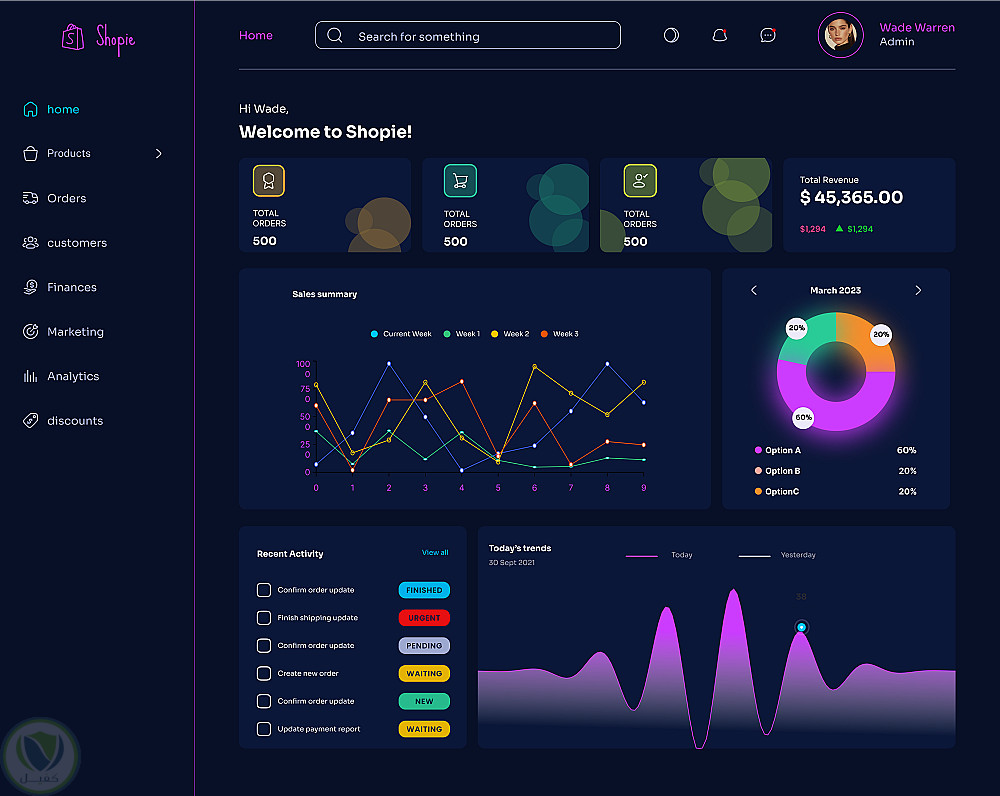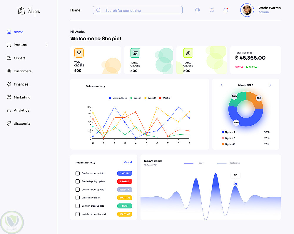 مشروع Shopie هو لوحة تحكم مصممة خصيصًا لمواقع التجارة الإلكترونية، تتميز بواجهة مستخدم حديثة وسهلة الاستخدام تساعد أصحاب المتاجر على إدارة أعمالهم بكفاءة. تم تطوير التصميم ليعكس البساطة والاحترافية، مع التركيز على تجربة المستخدم وتحسين الأداء