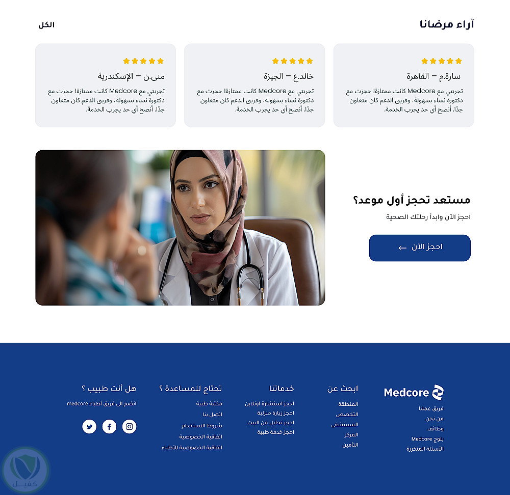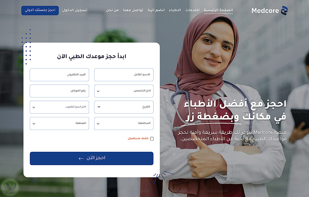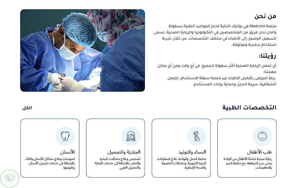 Medcore هو موقع إلكتروني تم تصميمه خصيصًا لتسهيل عملية حجز المواعيد الطبية للمرضى مع نخبة من الأطباء في مختلف التخصصات. يتميز التصميم بواجهة مستخدم بسيطة وسهلة الاستخدام، مع تجربة تصفح سلسة ومتجاوبة على مختلف الأجهزة.