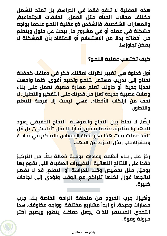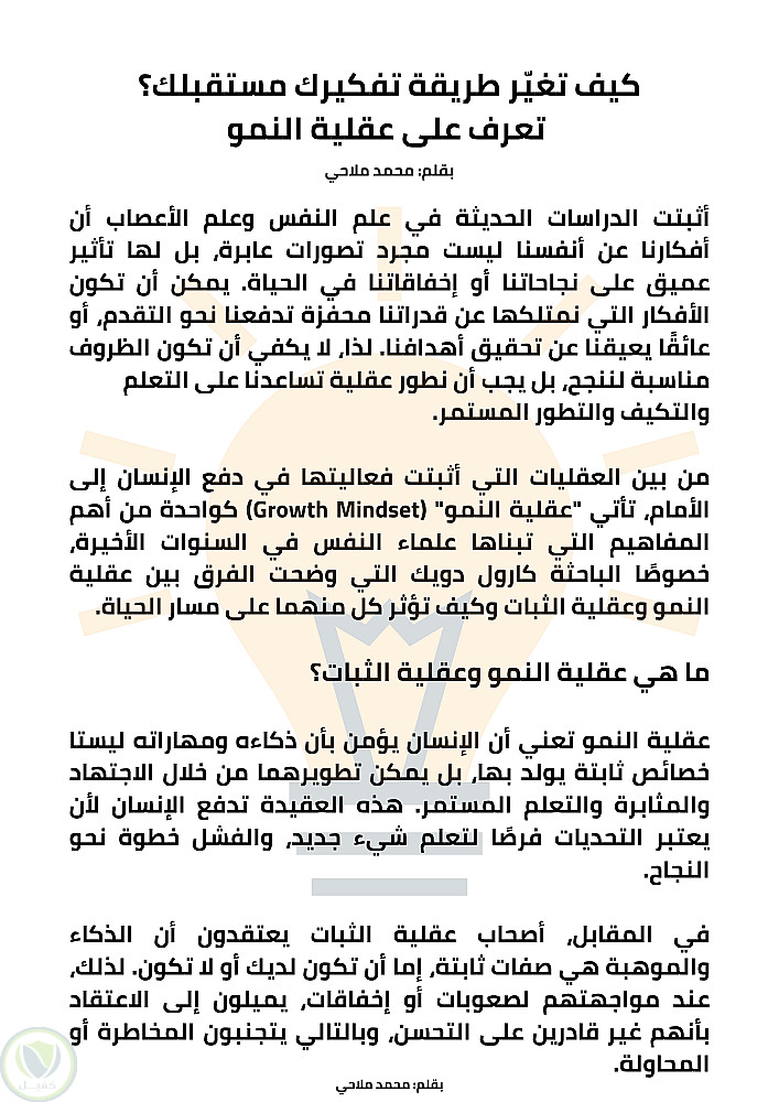 نموذج لمقالة كتبتها في مجال تطوير الذات