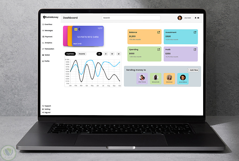 في هذا المشروع، قمت بتصميم وتطوير لوحة تحكم مالية بسيطة، أنيقة، وسهلة الاستخدام باستخدام HTML وCSS وJavaScript، بالإضافة إلى مكتبة Chart.js لعرض الرسوم البيانية التفاعلية.