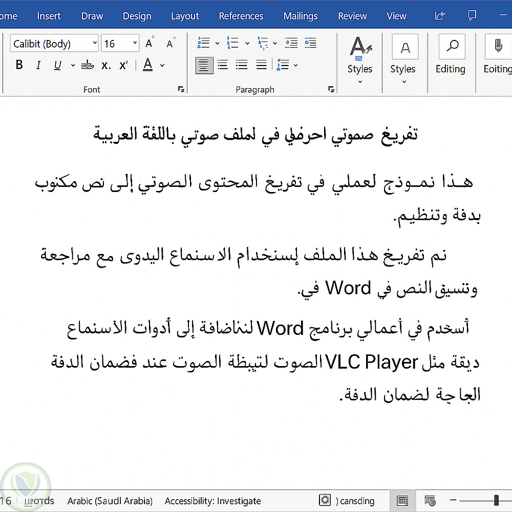 أستخدم في أعمالي برنامج Word بالإضافة إلى أدوات الاستماع الدقيقة مثل VLC Player لتبطئة الصوت عند الحاجة لضمان الدقة.