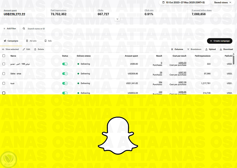 اعلانات مدفوعه عبر سناب شات وتيك توك لمنتج سعودي وتم تحقيق اعلى عائد واعلى مبيعات ومازلت الحملات قائمه الى هذا الوقت