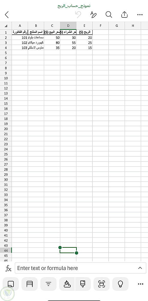تصميم ملف Excel احترافي لحساب الربح والخسارة