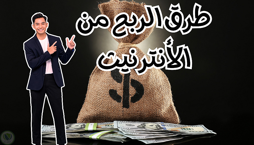 تصميم لي صورة مصغرة ليوتيب بعنوان طرق الربح من الانترنث التصميم به عبارة طرق الربح من الانترنث بخط ضاهر بشكل انيق مع شخص يلبس بدلة يشير الى الكلمات فيها بتيسامة عريضة