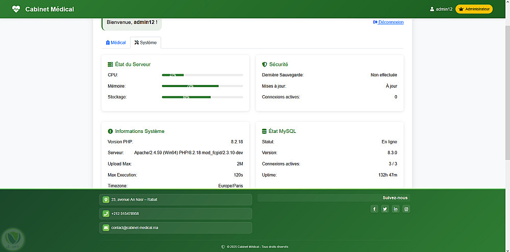 هذا مشروع نظام إدارة عيادة طبية قمت بتطويره باستخدام PHP وMySQL لصالح طبيب خاص.