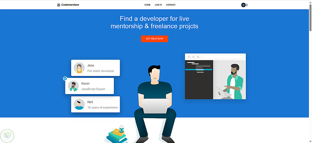 صفحه هبوط لموقع (Code mentor) عبارة عن منصة تربط بينك وبين مطورين محترفين