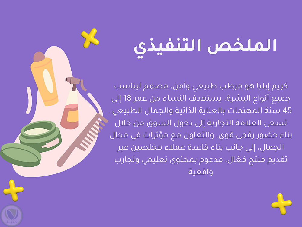 أعرض لكم نموذج عملي لخطة تسويقية متكاملة أعددتها لمنتج عناية بالبشرة باسم "Eilya"، كعينة توضح مهاراتي في إعداد وتنظيم الحملات التسويقية الرقمية لمنتجات التجميل.