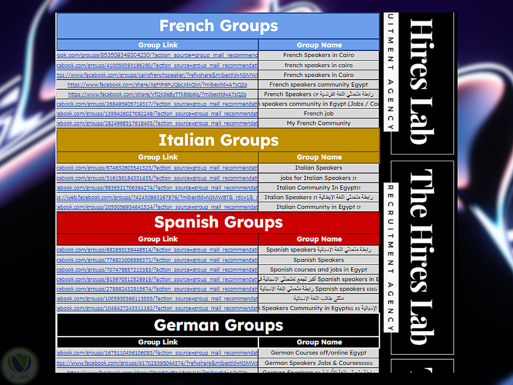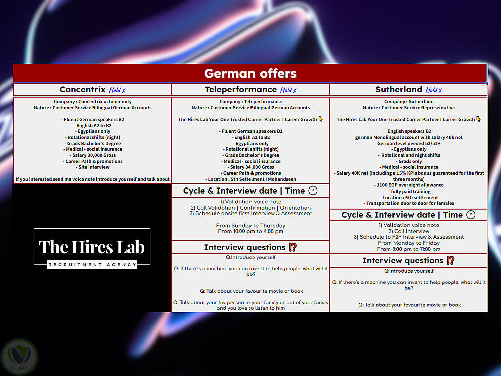 تصميم جدول منسق باحتراف ل شركة التوظيف The Hires Lab احد اخر اعمالي