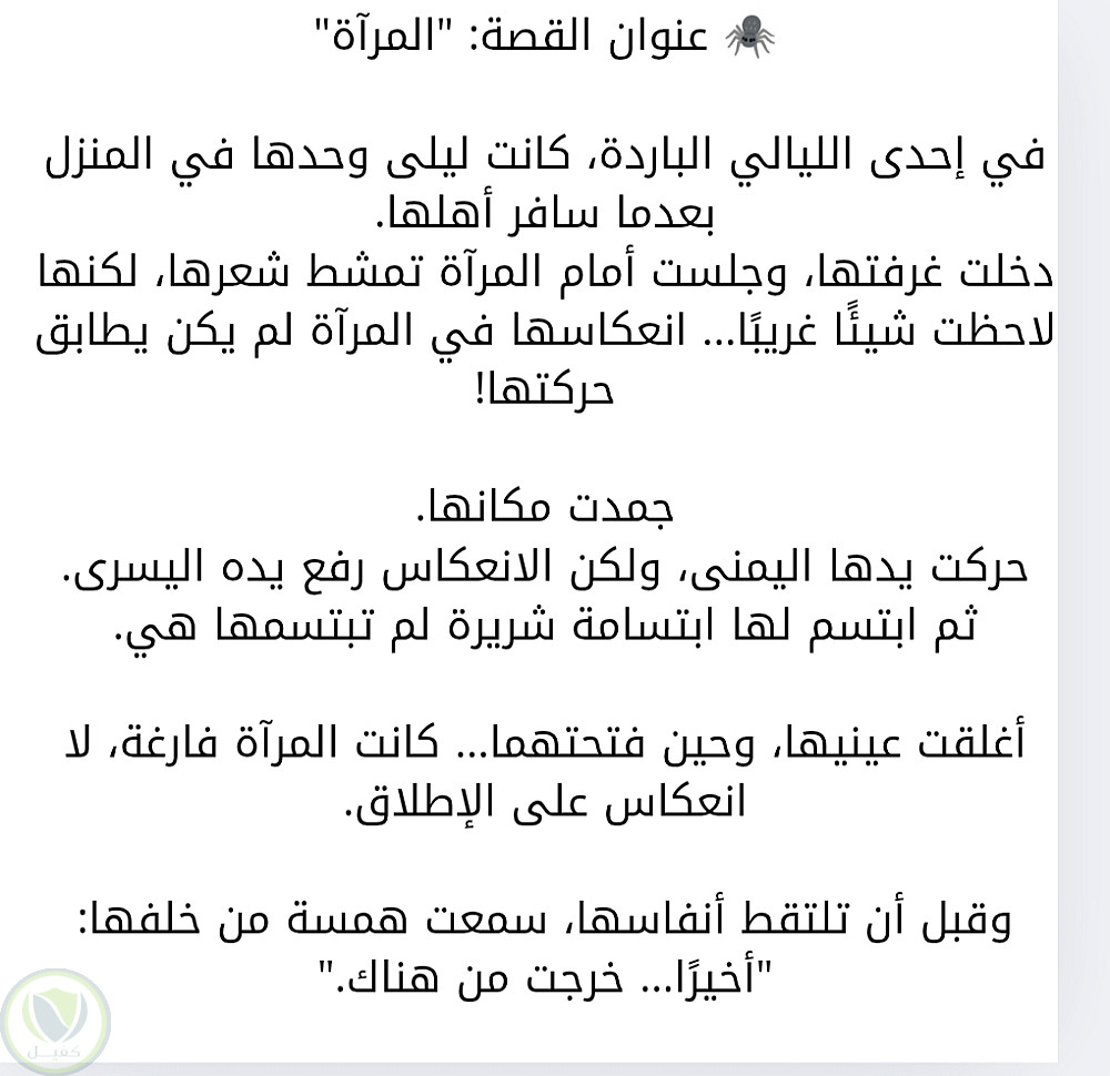 قصه مرعبه تتكلم عن وجود مرآه قديمه تصدر منها ظواهر غير طبيعيه والنهايه مفاجأة