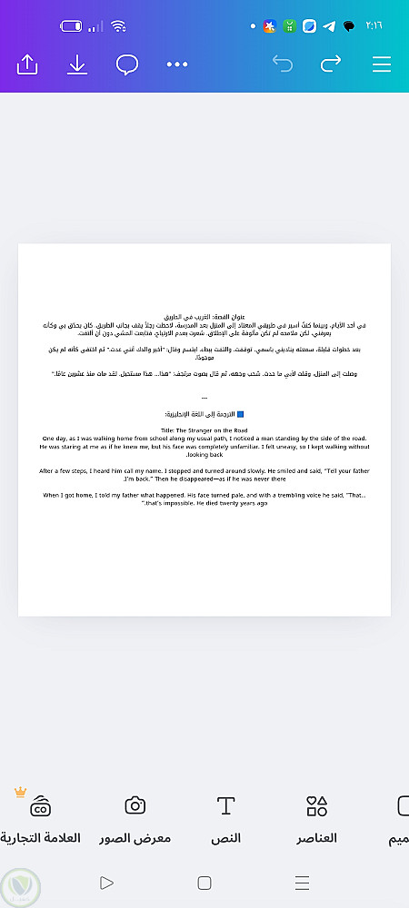 الاستخدام: مناسب للنشر الأدبي، مشاريع الترجمة، تطبيقات القصص، أو كنموذج عمل على منصات العمل الحر.