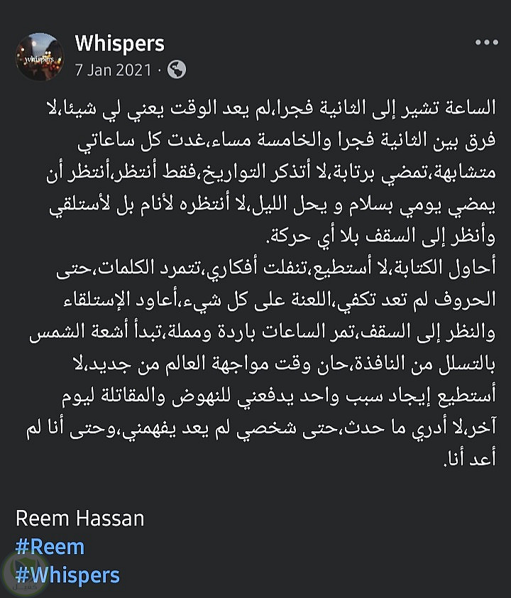 نص قمت بكتابه لدى صفحة whispers المهتمة بالكتابة الإبداعية