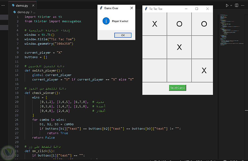 لعبة X-O الكلاسيكية (tic-tac-toe) تم برمجتها بلغة بايثون لتعمل في شاشة الكونسول. يمكن للاعبين التناوب لإدخال حركاتهم، والبرنامج يتحقق من الفوز أو التعادل تلقائيًا. اللعبة تحتوي على رسائل توجيهية وتجربة لعب تفاعلية ممتعة، ومناسبة كمشروع تعليمي لتقوية المفاهيم المنطقية والتعامل مع القوائم.