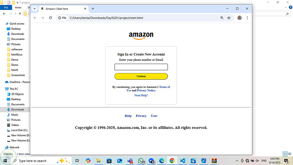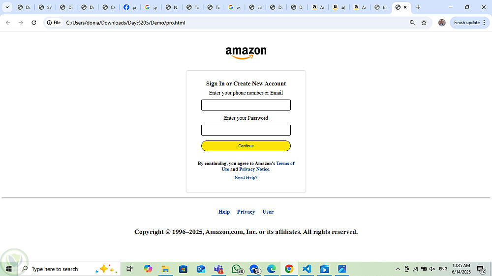 قمت بتطوير نظام واجهة تسجيل دخول وإنشاء حساب باستخدام **HTML، CSS، وJavaScript**. المشروع يحاكي صفحات تسجيل الدخول مثل Amazon، ويتيح للمستخدم إنشاء حساب جديد وتسجيل الدخول باستخدام بياناته.