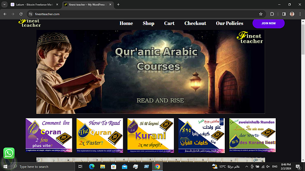 لقد قمت بإنشاء موقع ويب يسمى finestteacher.com باستخدام منصة ووردبريس، حيث قمت بعرض خبرتي في تصميم ووردبريس، تطوير ووردبريس وكتابة المحتوى. عملت بمفردي لضمان تلبية متطلبات المشروع من الجهة الأمامية والخلفية، واستخدمت تصميمًا متجاوبًا، ونفذت التفاعل باستخدام تصميم ووردبريس، تطوير ووردبريس وكتابة المحتوى. هذا المشروع قد عزز مهاراتي في إدارة الوقت، وتصميم الويب وكتابة المحتوى، مما منحني أساسًا قويًا في تصميم مواقع الويب باستخدام ووردبريس.