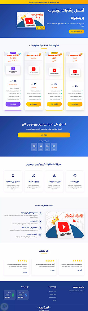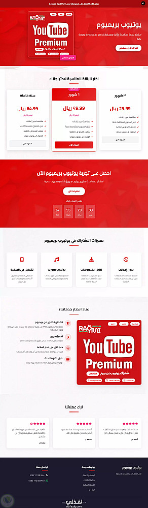 صفحة هبوط احترافية لعرض باقات YouTube Premium
