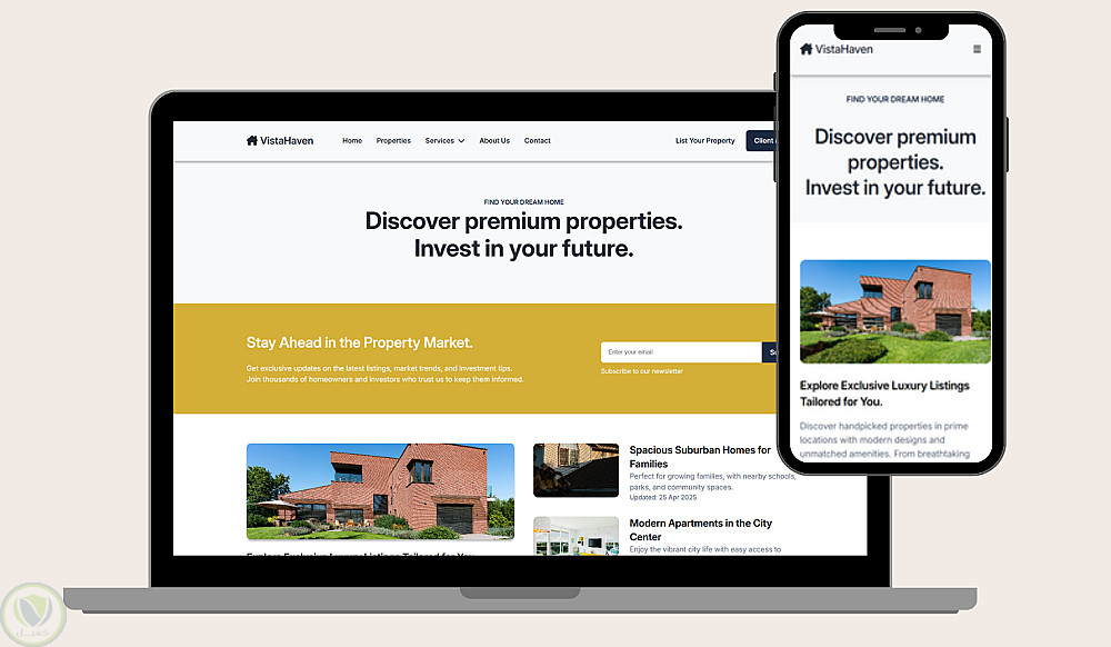 صفحة هبوط احترافية لموقع العقارات VistaHaven.