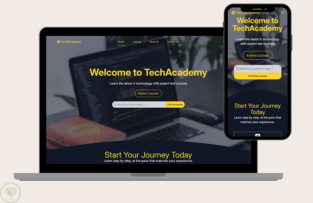 قمت بتطوير واجهة ويب تفاعلية لمنصة كورسات (Tech Academy) تتكون من صفحتين، باستخدام Tailwind CSS بشكل كامل لتصميم واجهة عصرية ومتجاوبة، مع إضافة وظائف تفاعلية باستخدام JavaScript لتعزيز تجربة المستخدم.
