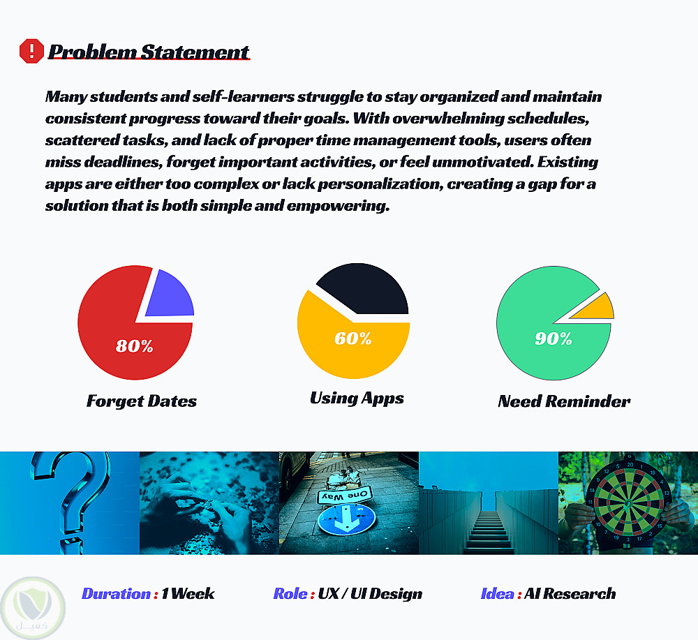 قمت بتصميم تطبيق مخصص لمساعدة الطلاب على تنظيم وقتهم الدراسي بشكل فعّال من خلال جدولة المهام والمذاكرة.