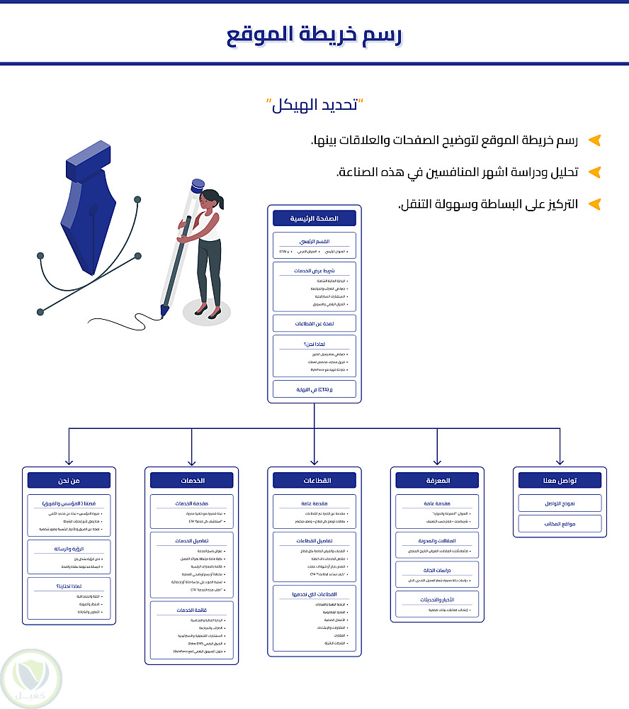 إعداد خريطة الموقع (Sitemap) وهيكل الصفحات.