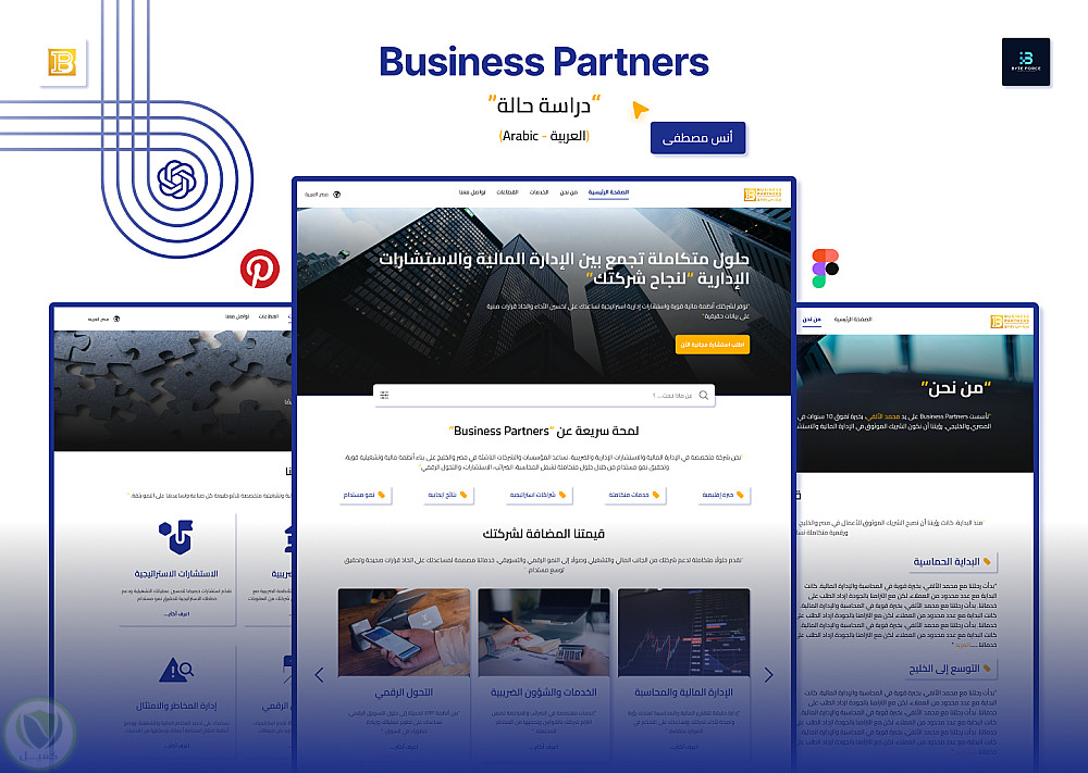 قمت بتصميم موقع إلكتروني احترافي لشركة Business Partners المتخصصة في الاستشارات والخدمات المالية والإدارية، وذلك ضمن عملي كمصمم UI/UX في شركة ByteForce.