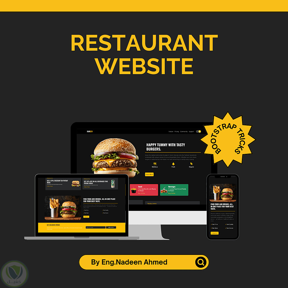 قمت بتطوير صفحة هبوط احترافية لمطعم باستخدام Bootstrap بتصميم متجاوب يعمل بسلاسة على جميع الأجهزة (موبايل – تابلت – كمبيوتر). الصفحة صُممت بعناية لتعكس هوية المطعم وتجذب الزوار لتجربة الطعام أو الحجز أونلاين.