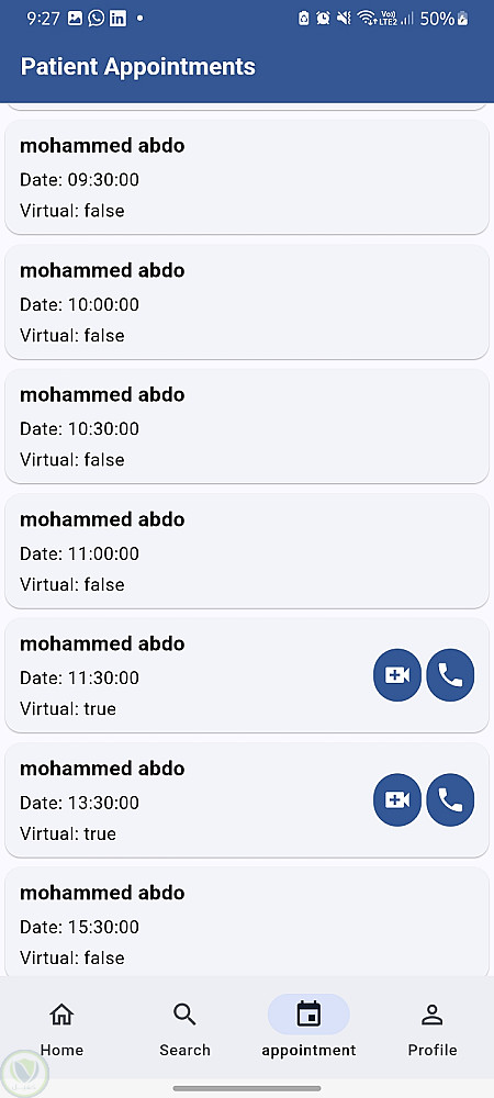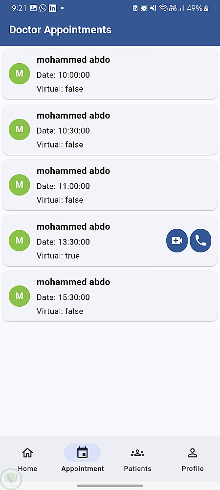 9- وجود مكالمه صوتيه و فيديو بين الطبيب و المريض