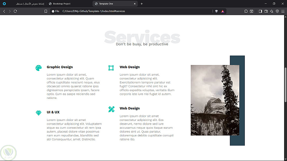 المشروع يحتوي على صفحة رئيسية متجاوبة (Responsive) مع أقسام أساسية مثل: الهيدر، منطقة الهبوط (Landing Section)، قسم المميزات، والفوتر.
