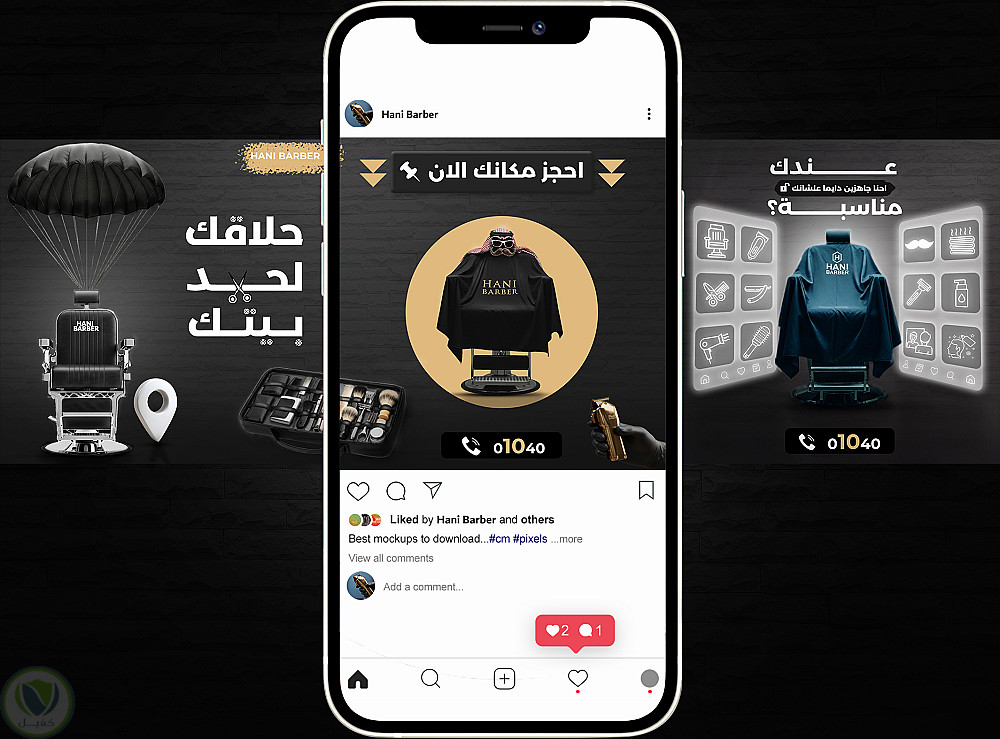 تصميم سوشيال ميديا لمحل حلاقة سعودي