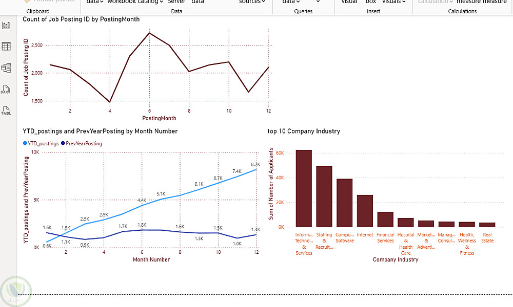 يركّز العمل على تحليل بيانات التوظيف من خلال تتبع عدد المتقدمين للوظائف المختلفة، ومقارنة متوسط أعداد المتقدمين مع الأهداف المحددة مسبقًا. كما يوضح التقرير أكثر الوظائف جذبًا للمتقدمين، إلى جانب عرض أعلى الرواتب المتوقعة، وتصنيف الوظائف حسب المستويات الوظيفية. يساهم هذا التحليل في دعم قرارات الموارد البشرية وتحديد أولويات التوظيف بما يتوافق مع احتياجات السوق.