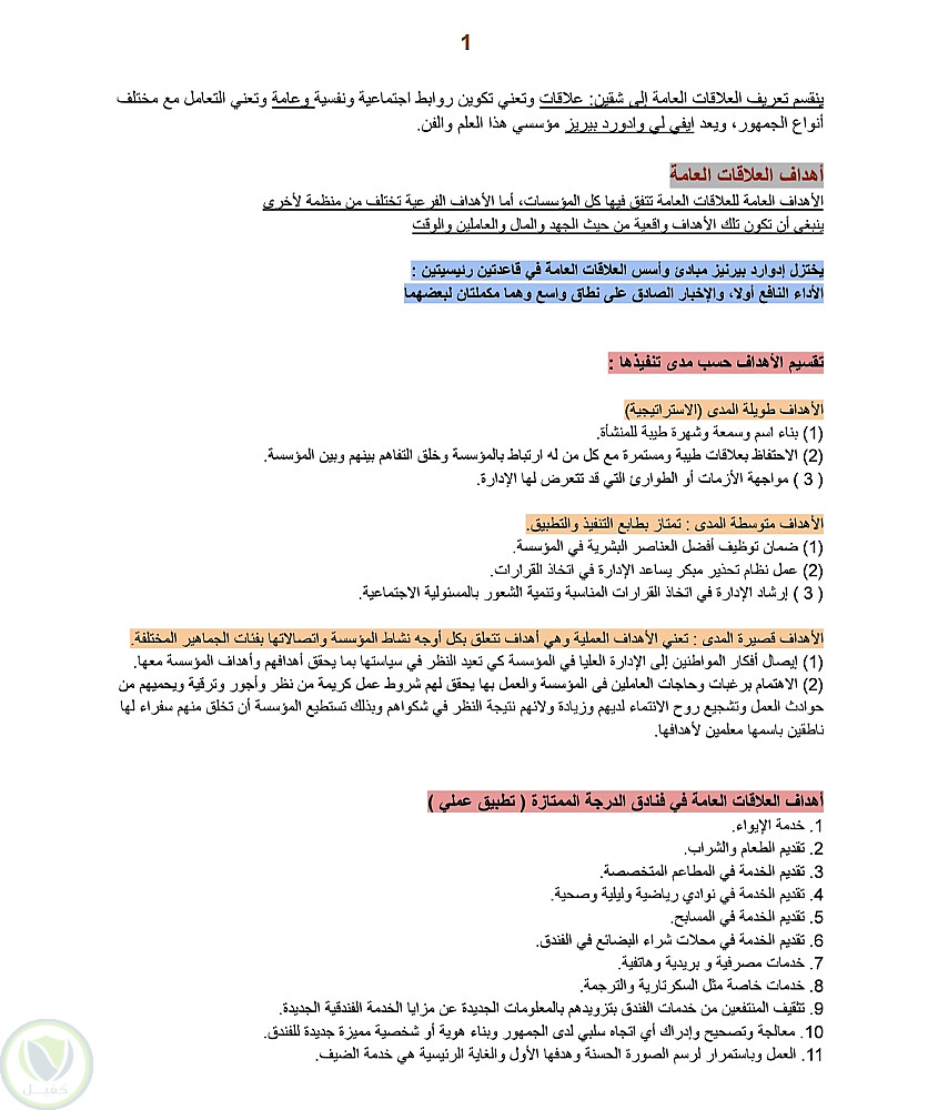 طلب مني شرح كورس عن العلاقات العامة الذب هو تخصصي وكان هذا جزء من النتيجة بحمد الله