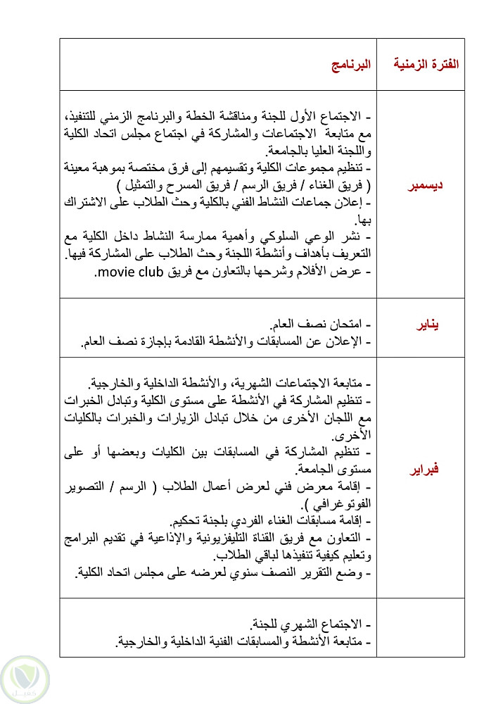 خطة اللجنة الفنية على مستوى الكلية